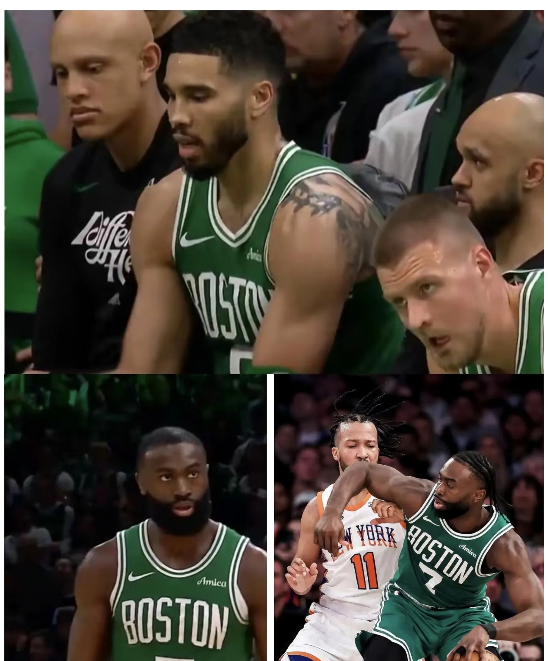 在比赛进入到第四节时,塔图姆在一次进攻中想要接球时无对抗倒地,之后他表情非常痛苦,久久未能起身,之后他在队友和工作人员的帮助下离场,返回。